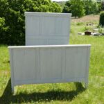 Altes Kinderbett aus schwerem Holz, hübsch zur Aufbewahrung von Kissen, Decken, Handtüchern oder Zeitschriften…Gestrichen mit grauer Kreidefarbe.